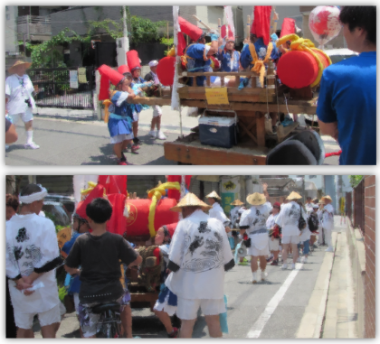 今日と明日の2日間、生根神社で「だいがく祭り」が行われます。千本小学校の子どもたちも枕太鼓の引き子として活躍しています。