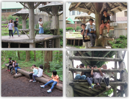 食材探しゲーム(食材の書かれてあるカードを、森の中で探すゲーム)の後、アサヒの森で遊びました。