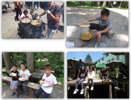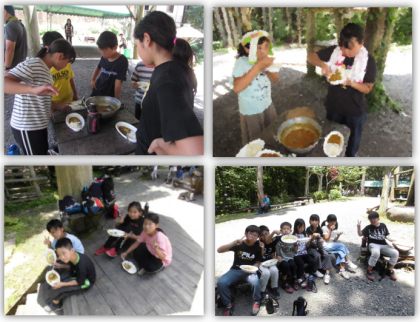 昼食はカレーライス。自分たちで調理をし、火を起こして、カレーを作りました。出来上がったカレーは、とってもおいしかったです。