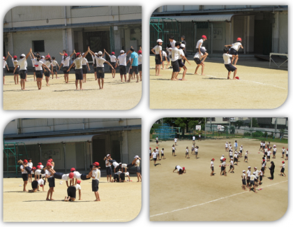 9月3日(火) 6年生の体育の学習です。運動会の団体演技(組体操)の練習に取り組んでいます。