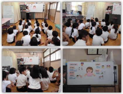 本日、2年生の発育2測定を行いました。測定に先立ち、養護教諭から『けがをしたときに、どうするか』ということについて、話をしました。