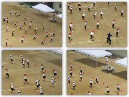 2年生の体育の学習の様子です。運動会に向けて、ダンスの練習に取り組んでいます。
