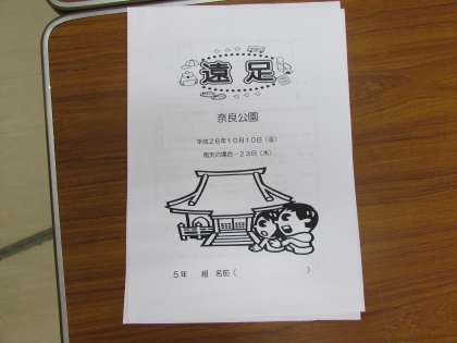 本日、5年生は秋の遠足に行きます。奈良公園に行ってきます。昨夜来の雨が心配されましたが、一夜明けて、素晴らしい晴天になりました。午前6時現在の発表で、奈良の天気は晴れ、降水確率は10%、最高気温の予想は27度となっています。少し汗ばむぐらいの陽気になりそうです。