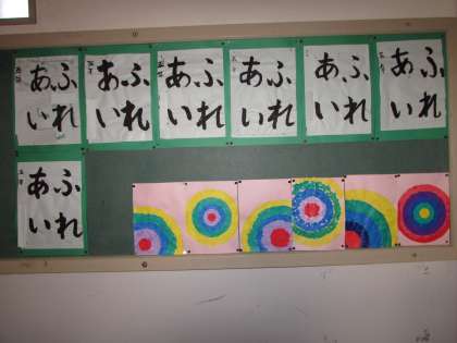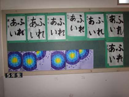 毛筆書写は、「ふれあい」です。5年生で最初の、ひらがなの書写です。