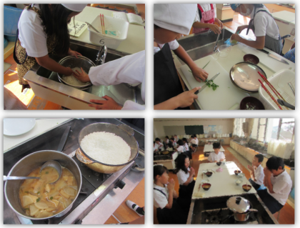 5年生の家庭科の学習です。今日は、1組と2組が、実習を行いました。今回の実習は「ご飯とみそ汁」です。とてもおいしくできました。