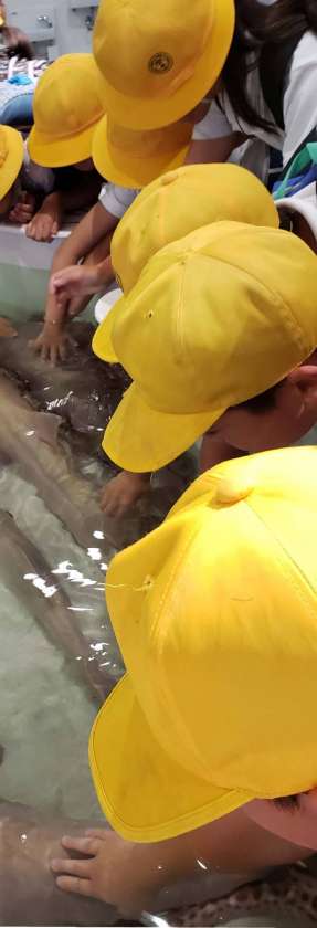 天候にも恵まれた本日、2年生は海遊館へ遠足に行きました。ジンベイザメを見て「めっちゃ大きいわ。」や、「近くに魚がひっついてる。」等たくさんつぶやいていました。ふれあいコーナーでは、サメやエイの背中に触れ、子どもたちは大興奮でした。電車内でのマナーや集団歩行も春より上手になっており、成長を感じることができました。早朝よりお弁当等のご準備ありがとうございました。