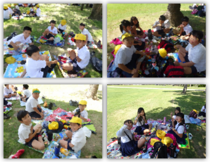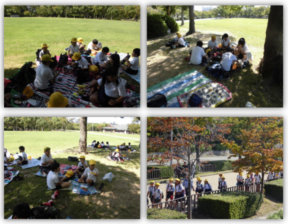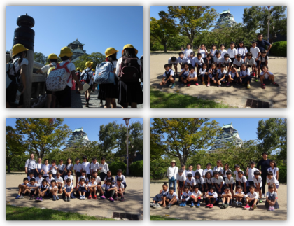 本日、3年生は秋の遠足で、大阪城公園に行ってきました。大阪城の天守閣に登って、大阪の街並みを眺め、西の丸庭園ではお弁当を食べたり、楽しく遊んだりしました。