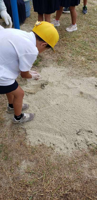 本日、2年生は芝生の種をまきました。鉄棒の下や双子山の近く等、芝のないところを中心にまきました。教えていただいた通り、丁寧に、愛情を込めてまくことができました。地域の皆様方、PTAの皆様方、お忙しい中のご準備、ご協力、ありがとうございました。