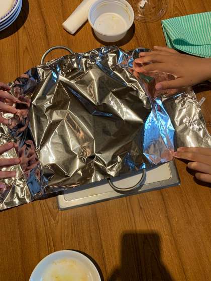 具材を全部のせて、最後にホイルをかぶせて、弱火にします。