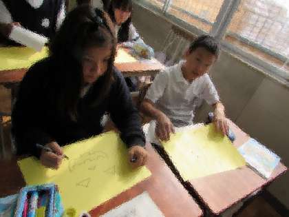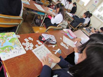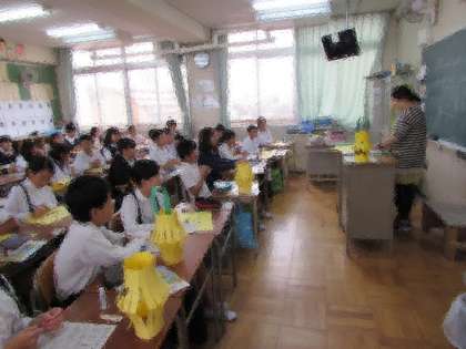 5年生、6年生の英語授業は、 Halloweenに関わるものでした。ビンゴゲームをしたり、色画用紙を使って、カボチャの飾り「ジャック・オー・ランタン(Jack-o'-lantern)」を作ったりしました。子どもたちも、すっかりハロウィンの気分になっていました。