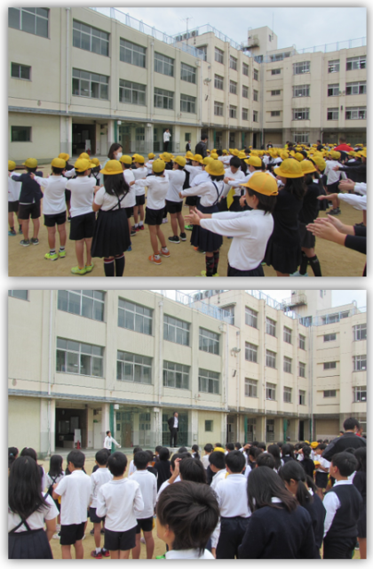 初めに、学校長の話です。先週の修学旅行で、6年生の行動がとても立派だったことを話しました。集合には、5分前、10分前にそろっていたこと、先生が話をしているとき、じっと話をしている先生の方を向いて聞くことができていたことなどを話しました。
