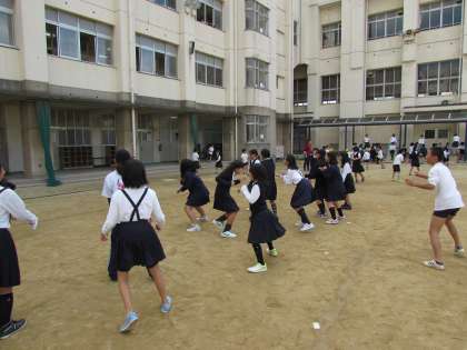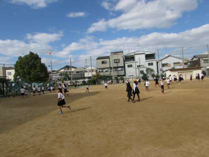今日の朝、雨はあがっていましたが、運動場には水たまりが残り、朝のうちは運動場を使うことができませんでした。2時間目が終わったころには、太陽も高く上がり、運動場で遊ぶことができるようになりました。