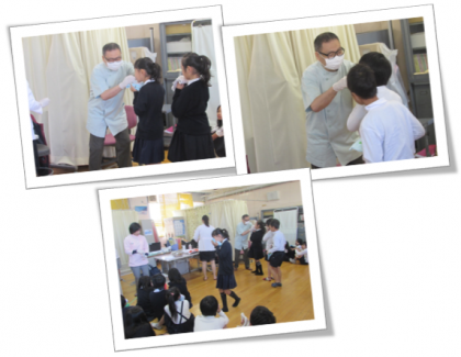 本日、4年生の歯磨き指導とフッ化物塗布を行いました。初めに、教室で歯磨き指導をしていただき、正しい歯磨きの仕方について学習しました。その後、保健室でフッ化物を塗布していただきました。
