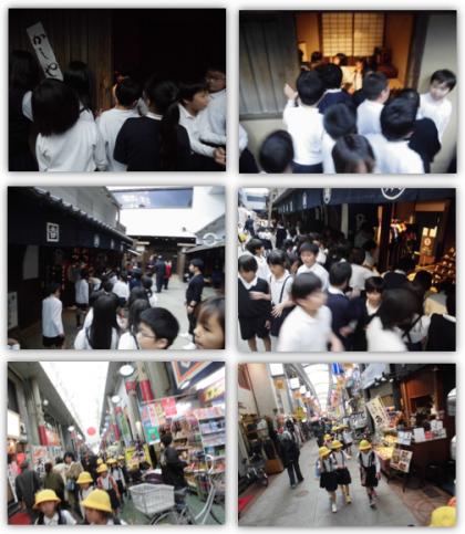 本日、3年生は社会見学で、「くらしの今昔館」に行きました。「くらしの今昔館」では、昔の街並みに入り込んで、昔の人々の生活を体験したり、日本一長い天神橋筋商店街を歩いたり、扇町公園に行って遊んだりしました。