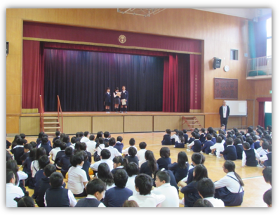 最後に、図書委員から、読書の記録についての報告があり、各クラスで一番本を読んでいた子の名前が発表されました。