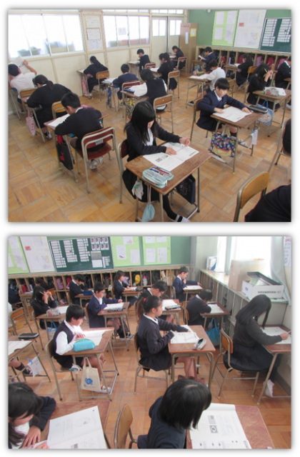 本日、3年生から6年生を対象に、学力経年調査を行いました。本日は、国語と社会科の経年調査を行いました。