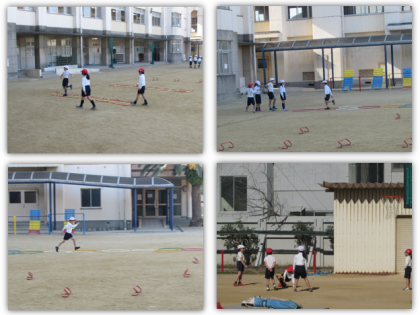 2年生の体育の学習の様子です。今日はラダー(はしご)やハードルを使って、跳んだり走ったりする運動に取り組みました。