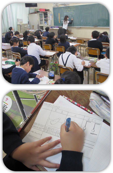 4年生の理科の学習です。金属や空気、水など、あたたまると体積が大きくなり、冷やされると体積が小さくなることをまとめています。