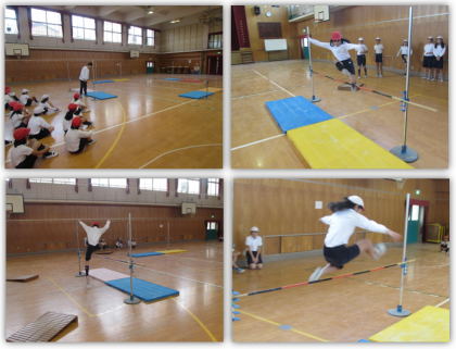 12月24日(火) 5年生の体育の学習です。体育館で、走り高跳びに取り組んでいます。