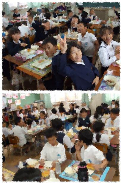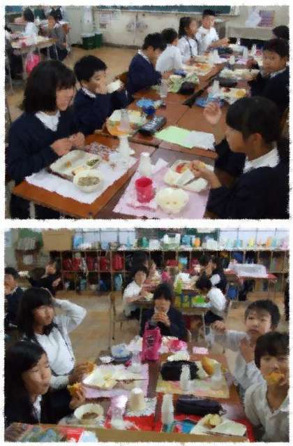 りんごは、色も鮮やかで、とっても甘かったです。3年生(画像上から2・3枚目)も4年生(画像4・5枚目)も、にこにこ笑顔でいただきました。