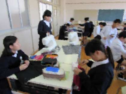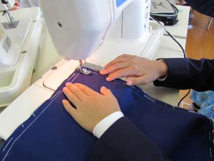 6年生は家庭科の学習で、お弁当包みを作っています。ミシンを使って、丁寧に仕上げていきます。