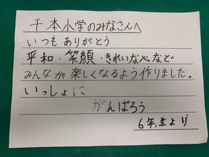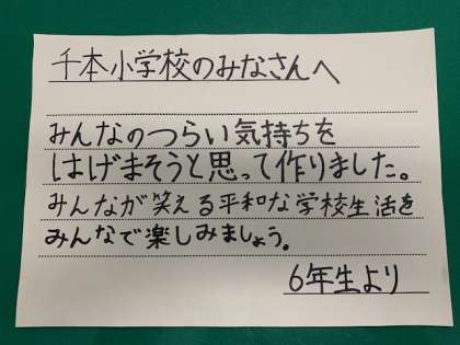 「千本小学校にかかわる人全員で、この苦難を乗り越えていこう!」「みんなが笑える平和な学校生活をみんなで楽しもう!」という熱い思いが伝わってきました。