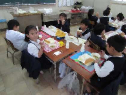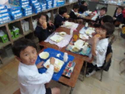1年生の子どもたちも、おいしそうにうどんをいただいていました。