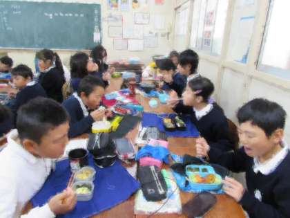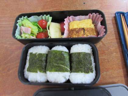 班ごとに献立が違うため、班のメンバーで仕事を分担し、手際よく作業を進めていきました。出来上がったら、おにぎりやおかずを、各自、お弁当箱に詰め、教室に持っていって、食べました。お弁当がとってもおいしかったことと、家の人がお弁当を作ってくれることへの感謝の気持ちが、強く心に残った学習でした。