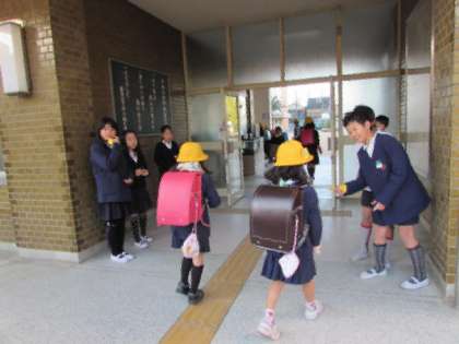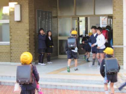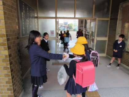 今週、一週間行ったあいさつ運動。代表委員を中心に、子どもたちが朝、玄関で、元気にあいさつを行おう、と運動を行いました。見ると、3年生の子どもも代表委員にまじって、あいさつをしています。元気な声が響き渡ると、それだけで明るい気持ちになれるようです。