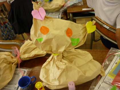 図工「くしゅくしゅぎゅ」いろいろな生き物や動物をつくりました。