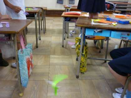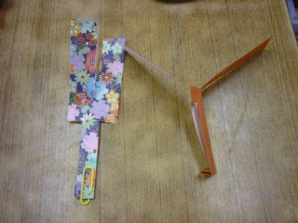 折り紙を使って、くるくる回るおもちゃを作りました。