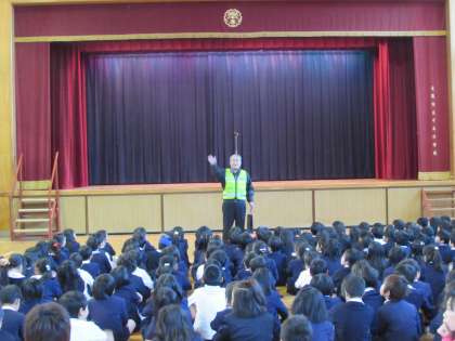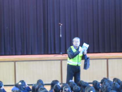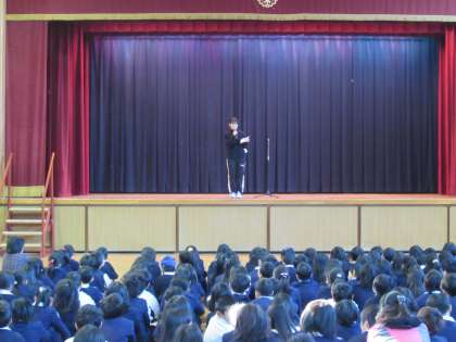 初めに、学校長からの話です。1つめは、交通事故に気を付けよう、という話です。年末・年始は、事故が多くなりがちです。交通ルールを守ること、特に自転車の乗り方に気を付けるよう、ご家庭でも声かけをお願いいたします。2つめは、昨日のもちつき大会のお話です。ビニル袋が道路にも落ちていました、皆さん、きちんとごみ箱に捨てましたか。3つめは、本の紹介を兼ねての話でした。今日、12月8日が真珠湾攻撃の日であるということ、本を読んで歴史のことを知りましょう、という話でした。