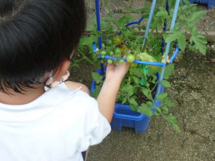 ミニトマトの観察をしました。だんだんと実も大きくなってきました。