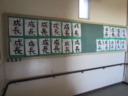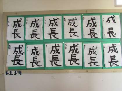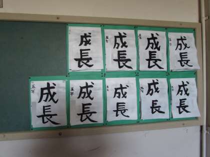 5年生の毛筆書写です。「成長」と書きました。5年生になって9か月。心も体も、大きく「成長」している5年生です。