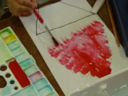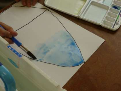 絵の具でかきごおりを描きました。色とりどりのかきごおりができました。