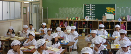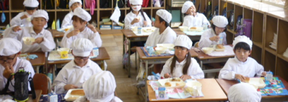 今日から給食が始まりました。「おいしい!!」という声がたくさん聞けました。全員完食し、元気いっぱいです。