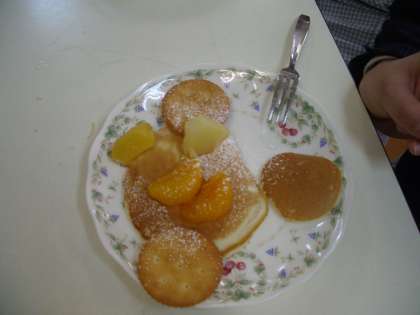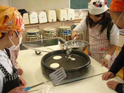 作ったものは、ホットケーキです。見た目も美しい、おいしいホットケーキが焼き上がりました。