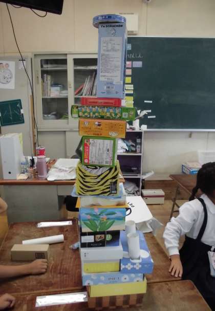今日は、たくさんの箱を使ってかたちあそびをしました。