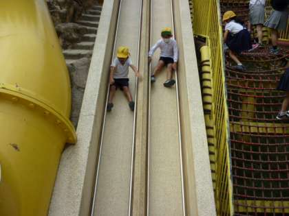 キッズプラザ大阪を出て、扇町公園でお弁当を食べ、そのあと公園で遊びました。