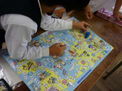 算数セットに入っているすごろくを使って遊びました。楽しく活動することができました。