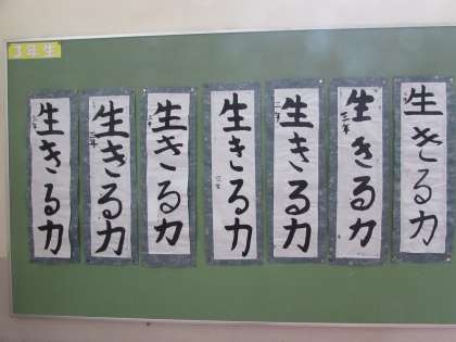 3年生の書き初めをご紹介します。3年生は「生きる力」と書きました。縦長の紙に書くこと、ひらがなを字の形を整えて書くことが難しかったのですが、子どもたちは頑張って描きました。