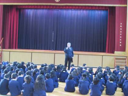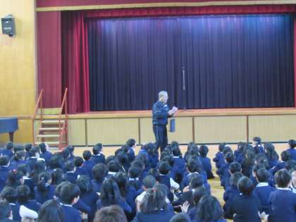 初めに、学校長からの話がありました。先日行った防災学習・避難訓練の内容を、しっかりと実践できるようにしましょうということ、今週が給食強調週間であるということ、また、新聞に載った小学生の作文を引用して、めあてをもって過ごしましょうという話でした。