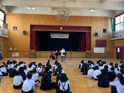 本校創立100周年を記念して、本日、大阪フィルハーモニー交響楽団による出前コンサートが行われました。子どもたちはプロの演奏に心を癒されていました。