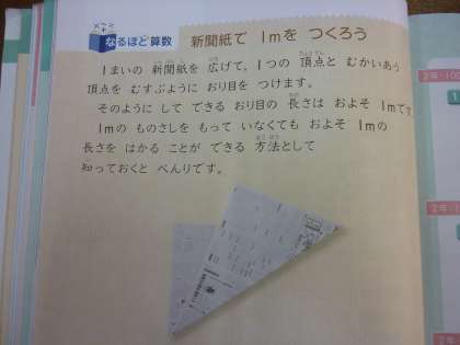 算数「新聞紙で1mをつくろう」