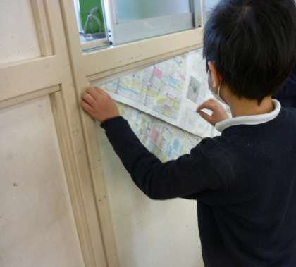 二人一組になって、およそ1mの長さのものを探しました。