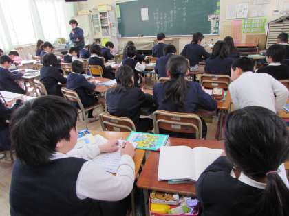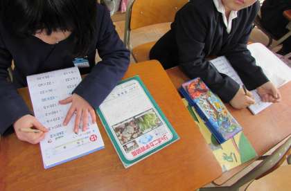3年生の学習の様子です。3年生が、計算ドリルの答えあわせを行っています。