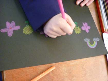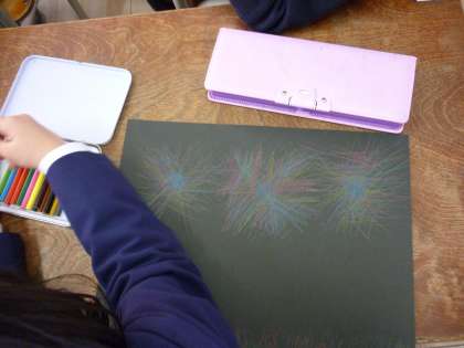 ヒヤシンスの根っこがのびてきたので、まわりを囲うカバーを作りました。カバーにすきな絵を描きました。
