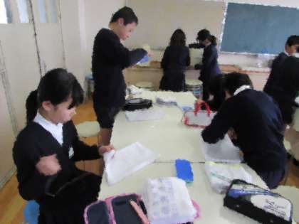 6年生は、あと1か月ほどで(3月19日)卒業します。これまでの6年間、お世話になった方たちへの感謝の気持ちを伝えようと、さまざまな活動に取り組んでいます。家庭科では、各学年で使ってもらう雑巾を作っています。一生懸命に掃除をする千本小学校の子どもたちです。学校を美しくするために役立ててもらおうと、6年生が頑張って作っています。これらの雑巾は、3月3日(火)の卒業おめでとう集会で各学級の子どもたちに渡す予定です。