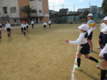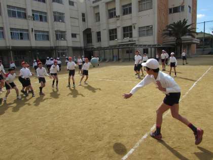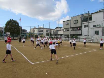 本日の5時間目、運動場で5年生と6年生のドッジボール大会を行いました。試合前、「圧勝する。」と、息巻いていた6年生ですが・・・