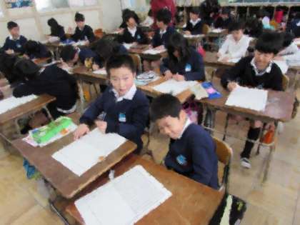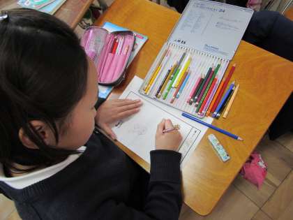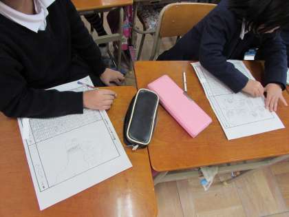 3年生は、土曜授業の様子を思い返して、絵日記を書いていました。七輪を使ってお餅を焼いた楽しい思い出を、絵と文章で書いていきました。
